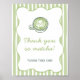 Complete your baby shower decor with this adorable matcha-themed thank-you poster. Featuring the phrase “Thank You So Matcha! Please Take One!” on a soft striped matcha green background with a wavy frame and hand-drawn matcha cup, this sign is perfect for displaying beside your guest favors. The handwritten-style green font adds a cozy, modern touch, and it looks beautiful framed or displayed on an easel. A lovely way to thank guests as they take a gift before leaving your “We Love You So Matcha” celebration.
