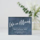 Behalt deinen Freunden und Verwandten mit diesen einfachen, eleganten Ankündigungskarten immer auf dem Laufenden mit deiner neuen Adresse. Sie können sie in Ihre Hochzeitsmailings eintragen oder sie persönlich teilen, wie Sie es für richtig halten. Egal, ob Sie neu verheiratet sind oder einfach nur ein einzigartiges Design für den lass Ihres Stammes gewollt haben, diese Karte ist vielseitig genug für jeden. Es enthält hübsche Typografie-Grafiken, die auf der Vorderseite "We've Moved" und auf der Rückseite "Bleibe in Touch!" mit einem modernen, lässigen, handgeschriebenen Skript-Schriftart lesen. Verwenden Sie die Vorlagenfelder, um alle Ihre eigenen Daten hinzuzufügen, um dieses Design für Ihren eigenen Gebrauch zu personalisieren. Der weiße Typ wurde auf einem Vintagen strukturierten grunmarineblau-Hintergrund platziert. Wenn Sie es lieber mit einem anderen Hintergrundbild ersetzen wollen, ist das auch möglich! 105 //