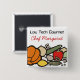 Großer Stapel der Früchte, des Gemüses und des gesunden Speisens der Eier, des Vegetariers oder des wearable Knopf- oder Namen-AllzweckAbzeichens für die persönlichen oder privaten Köche, des Lebensmittellieferanten, des Caterings, der kochenden Klassen oder der kulinarischen Anweisung. Tragen Sie einen Knopf anstelle der teuren Stickerei. Kürbis, Zwiebel, Zucchini, grüner Pfeffer, Zitrone, Pilze und weiße und braune Eier in einer bunten durcheinandergebrachten Anordnung.