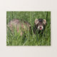 Niedliche Furry Frettchen Puzzle. Sable ferret Begleiter im Frühjahrsgras, der seine Zunge herausklebt. Grünes, üppiges Gras für das Spiel Ferret. Grosses Puzzle mit niedlichen Tierweinen. Sie können die Größe des Rätsel anpassen. Eine tolle Geschenkidee für Pelztierfreunde.