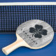 Weathered Dark Gray Wood Four Leaf Clover withName Tischtennis Schläger