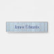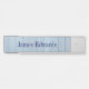 Individuell anpassbare Namensplatte für Crafters, Künstler, Unternehmen auf einem dunkelgrauen Holz wie Textur Hintergrund mit hellgrauem Druck dargestellt.