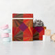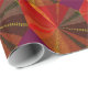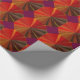 Dieses auffallende Papier zeichnet sich durch ein sich wiederholendes Muster eines dekorativen, geometrisch abstrakten Designs aus. Brillante Farben wie Rot, Orange, Gold, Braun, Gelb, Maron und Grün konvergieren in der Mitte in einem Wirbelmuster. Der zentrale Kreis hat sich wiederholende Dreiecke, die an verschiedene gewebte Texturen erinnern.