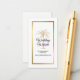 Mit dieser eleganten Einschließkarte mit modernem Drehbuch, schwarzem Text inklusive einer goldenen Palme, einem goldenen Metallrahmen und einem weißen Rahmen an der Vorderseite der Karte erhalten Sie alle Ihre Hochzeitsdetails auf Ihrer Website. Auf der Rückseite befindet sich ein weißer, koordinierender Hintergrund.