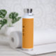 Ihre Firmenlogo-Website oder Slogan Custom Water Flasche. Ein schlichtes modernes Design in Mandarine Orange, für ein stilvolles und berufliches Aussehen. Jede Farbe, jeder Schriftart, kein Minimum.