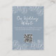 Elegante bohemianische florale botanische Hochzeitswebseite Informationen Gehäuse Karte mit einem QR-Code. Schöner Vintager zeichn von Set aus weißer Pfannkuchen auf einem staubblauen Hintergrund mit weißer Schrift und kühnen Schriftzeichen mit einem wiederholten staubblauen zeichn von Bauern, die Ihr romantisches Foto auf der Rückseite abstecken. Behalt die generischen Texte oder füge deinen eigenen personalisierten Text hinzu. Minimalistisches Design mit einem romantischen rustikalen Bohustempfinden. Wenn Sie Hilfe benötigen, um Änderungen vorzunehmen, schicken Sie mir bitte eine E-Mail an desigsbykatz@gmail.com und ich helfe Ihnen gerne.