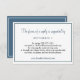 Dieses schlichte, formelle und dennoch moderne, staubblaue Hochzeitsempfang-Gehäuse verfügt über ein elegantes Drehbuch und bietet den Gästen die Möglichkeit, über Ihre Hochzeitswebsite, per E-Mail oder per SMS oder über eine Antwortkarte (separat erhältlich) zu antworten. Einfache Anpassung an Ihr eigenes Antwortdatum, Ihre Website und Ihre uAwg.