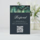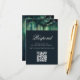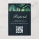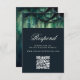Eine elegante, moderne, klassische Hochzeitswebkarte mit QR-Code, die eine skurrile Aquarellbilder von üppigem Blattwerk in smaragdgrünem Blau enthält, die mit Feenlampen und zauberhaftem Staub strahlt: ein bezauberndes Waldthema. Eine elegante, moderne RSVP Karte für eine märchenhafte Hochzeit. Ideal für Brautpaare, die die märchenhafte Waldlandschaft, den Märchenwald oder den Märchengarten mit smaragdgrünen Lieben.