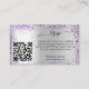 Personalisieren und fügen Sie Ihre Namen, Hochzeitwebsite url für Ihre eigenen QR-Code und Text. Ein Imitat silber aussehender Hintergrund mit Imitaten violett, lila Glitzer.
