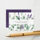 Diese rustikale Lavendel und Eukalyptus Website Umschließung Karte ist ideal für eine einfache und elegante Hochzeit im Freien. Das Blumendesign zeichnet sich durch Aquarelleukalyptus-Blätter und Grünpflanzen mit lila Wildblumen aus.