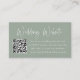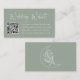 Machen Sie es einfach, mit diesen Hochzeitswebkarten mit QR-Code mehr Informationen über Ihre Hochzeit und Ihre UAWG online zu finden. Die Hochzeitszimmerkarten verfügen über die "Wedding Website", die in handgeschriebener weißer Kalligrafie mit einem sage-grünen Hintergrund dargestellt ist. Personalisieren Sie die Karte mit Ihrer Hochzeitswebsite-Adresse und den Anweisungen für die Gäste, die die Vorlagen zur Verfügung gestellt. Auf der Rückseite der Hochzeitswebkarte befindet sich eine weiße Kunstdarstellung eines Mondes, die mit funkelnden Sternen und üppigem botanischem Blattwerk geschmückt ist. Das Set ist auf einem halbgrünen Hintergrund gehalten.