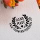 Laurel trug handgemachte Briefmarke mit einem niedlichen Herz und Ihre Website-Adresse in einem Vintagen Schriftart.