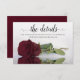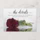Diese schöne Hochzeitsdetails/Website-Karte ist so konzipiert, dass Ihre Gäste wissen, wo sie online gehen können, um mehr Informationen über Ihre Hochzeitswebsite zu erhalten. Es zeichnet sich durch ein elegantes Design aus, das mit einer kalligraphischen Schrift und einer weinroten, weinroten Rose aus Single, Bordeaux und besticht.