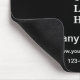 Sie können das Display auf diesem schwarz-weißen Mousepad durch Ihr Firmenlogo ersetzen. Das Display befindet sich in der Mitte. Der Text zur Anzeige Ihres Firmennamens, Ihrer Website und Ihrer Telefonnummer befindet sich unten. Der Text ist weiß. Alle Texte können bearbeitet oder gelöscht werden.