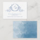 Fügen Sie Ihre Hochzeitswebsite oder Ihre Empfang-Details mit dieser wunderschönen mit Monogramm Kapselkarte mit eleganten blauen botanischen Monogramm mit Paarinitialen hinzu. Vorder mit feinem blauem Aquarellrahmen und hinten mit zarter, vollfarbiger Wasserfarbe in blauen Farbtönen. Monogramm mit Initialen in klassischer Typografie. Auch mit Initialen in modernen eleganten Blocktypografie erhältlich. Teil unserer Kollektion "Blue Watercolor Botanical Monogram Wedding" mit einer Vielzahl von Produkten zur Koordination. Besuchen Sie die gesamte Sammlung mit diesem Link: https://www.zazzle.com/collections/blue_watercolor_botanical_monogram_wedding-119923294821263262
