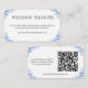 Ihre Hochzeitsgäste können online UAWG machen oder alle Einzelheiten Ihres Hochzeitstages mit dieser zauberhaften blauen Blumenkarte erfahren. Das Design ist mit hübschen blauen Blumenelementen in einem Aquarellstil in den Ecken gestaltet und wurde speziell für eine bestehende Hochzeitssuite entwickelt, die Sie als Sammlung sehen können. Die Rückseite der Karte hat einen QR-Code, den Sie mit Ihrem eigenen Link auf der Hochzeitswebseite anpassen können, sodass Ihre Gäste auch mit all Ihren Hochzeitsvorbereitungen auf dem Laufenden sein können und natürlich alle wichtigen Informationen finden, die sie für Ihren großen Tag benötigen.