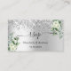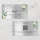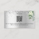 Ein silbernes Imitat mit Konfetti, weißen Blumen, Blume und Eukalyptusgrün. Personalisieren und fügen Sie Ihre Namen, Hochzeitwebsite url für Ihre eigenen QR-Code und Text.