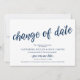 Dies ist eine verspätete (Postponement) Hochzeitskarte, mit Kartentitel, Datumsänderung, in Navy Blue Drehbuch Schriftart, Modern Rustic design themed.