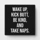 Weck auf, kick Hintern, sei nett und nimm Nickerch Fotoplatte