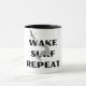 Dieser Becher zeichnet sich durch ein dynamisches grafisches Design eines weckend Surfers aus, mit einer stilisierten Welle darunter und einem Vogel, der über ihm fliegt. Die Worte "WECK SURF REPEAT" werden in fett gedruckten Hauptstädte über und unter dem Surfer deutlich dargestellt. Dieses Design vereint den Nervenkitzel und die Begeisterung des weckend Surfens und ist somit eine ideale Wahl für Wassersportler.