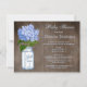 Weckglas-u. blauer Hydrangea-rustikale Babyparty Einladung