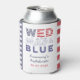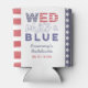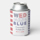 Einfaches und stilvolles "WED White and Blue" Design mit den US Flagge, hier auf Dosenkühlern gezeigt. Das Design kann sich als Dekoration UND Gastgeschenk verdoppeln! Vergnügen Sie sich bei einer Bachelorette oder Dusche im Freien.