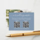 Moderne Minimalistische Einfache Hochzeit Website Umschließungskarte mit QR Code. Fügen Sie Ihre 2 QRs hinzu - UAWG und Hochzeitsdetails. Stilvolles Kalligraphieskript. Foto zurück. Dusty Blue