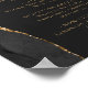 An elegant sign for your wedding bar menu. The words "bar menu" appears in gold-colored handwriting calligraphy with swashes at the beginning and end, with customizable text below. An black watercolor agate design trimmed with gold faux glitter decorates the left border on a slate black background. See our collection for matching wedding invitation suite and day-of stationery.