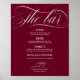 Wedding Bar Menu Sign Chic Burgundy Marsala Poster