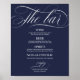 Wedding Bar Menu Sign Chic Navy Blue Poster