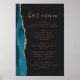 Wedding Bar Menu Teal Blue Gold Agate Dark Poster