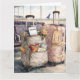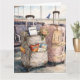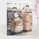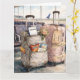 A cheerful and funny custom wedding congratulations card perfect for newlyweds heading off on their honeymoon trip. A playful scene shows a carry-on packed with snacks, a boarding pass to the Bahamas, and a fading wedding corsage tucked into the pocket ready for takeoff. The humorous design of this folded card celebrates love, travel, laughter, and the real-life details that make a marriage adventure unforgettable. Personalize the luggage tag with the couple’s name and customize the verse inside to create a one-of-a-kind keepsake. Wonderful for wedding congratulations, engagements, bon voyage wishes, bridal shower send-offs, destination weddings, "we've eloped" announcements, or celebrating a first adventure together as a married couple.