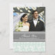 Kundenspezifisches Foto der Hochzeit danken Ihnen für die Geschenkkarten im eleganten hellen tadellosen Vintagen Pastellmuster des Grün-, Grauen und weißenklassischen Blumendamastes. Völlig kundengerecht, doppelseitig, verfügbar in vielen zusammenpassenden Produkten für Ihren ganzen Hochzeits- oder Partybedarf. Treten Sie mit uns in Verbindung, um um eine Farbänderung zu bitten oder kundenspezifisch anzufertigen.