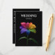 A polished and practical details card from the Technicolor Love collection, designed to give guests all the essential information in one beautifully coordinated piece. The bold rainbow lily anchors the design with its vibrant colour spectrum, creating a striking contrast against the dark background and tying the card seamlessly into the rest of your suite.