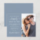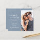 Eine preisgünstige, staubblaue Hochzeit spart die Datumsanzeige mit Ihrem Foto und "Happily Ever After" in einer Mischung aus schlichter, moderner Weißtypografie und einem stilvollen, weißen Drehbuch mit Wimpern. Personalisieren Sie Ihre Save the Date Angaben und fügen Sie Ihre Namen in ein signaturähnliches Skript ein. Ihre Namen und Ihr Hochzeitstag werden durch ein Herz auf der Rückseite miteinander verbunden.