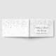 This guest book is shown in white with a curtain of silver colored petite stars on both front and back are splattered all over this guest book.