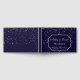 This guest book is shown in a navy-blue color with a curtain of silver colored petite stars on both front and back are splattered all over this guest book.