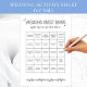 Behalt den kleinen Gästen während des großen Tages mit einem Bingoblatt für Hochzeitsgäste, das speziell für Kinder entworfen wurde! Diese interaktive Aktivität mit lustigen Anlässen wie dem Tanzen, dem Suchen eines Gastes in einem Hut oder jemandem, der aus der Ferne gereist ist, verleiht dem verlobten behalt der Kinder Aufregung. Ideal für Empfang, ist es ein spielerischer Weg, die Kinder zum Feiern lassen, während sich die Erwachsenen vermischen und toasten.