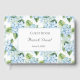 Non-Foil Dieses Gästebuch wird in einem romantischen blauen Hydrangea-Druck gezeigt. Leere weiße Seiten Personalisieren Sie dieses Buch und passen Sie es weiter an, indem Sie die Beispielnamen und das Datum an Ihre ändern. Lizenziertes Bild