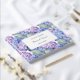 Non-Foil Dieses Gästebuch wird in einem romantischen blauen Hydrangea-Druck gezeigt. Weiße Seiten mit Zeilen. Personalisieren Sie dieses Buch und passen Sie es weiter an, indem Sie die Beispielnamen und das Datum an Ihre ändern. Lizenziertes Bild