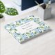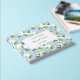Non-Foil Dieses Gästebuch wird in einem romantischen blauen Hydrangea-Druck gezeigt. Weiße Seiten mit Zeilen. Personalisieren Sie dieses Buch und passen Sie es weiter an, indem Sie die Beispielnamen und das Datum an Ihre ändern. Lizenziertes Bild