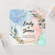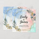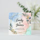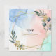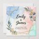 A sleek and artistic wedding invitation featuring an abstract watercolor background in soft blue, blush pink, and mint tones. The design is enhanced with a geometric gold foil frame and modern botanical illustrations, creating a luxurious and stylish look. The couple's names are highlighted in bold, elegant script, complemented by minimal sans-serif fonts for the details. Perfect for a contemporary, stylish wedding that values artistic expression and modern aesthetics.