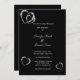 This wedding invitation is shown in a classic layout with a fresh look of diamond hearts with sparkle all done in a black and white theme,