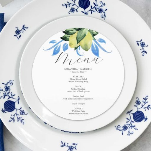 These wedding invitations with RSVP cards showcase vibrant watercolor lemons, soft greenery, and delicate blue accents — a fresh take on unique wedding invitation ideas for couples planning a destination wedding or an outdoor botanical wildflower celebration. Designed as an elegant seal and send or folded marriage style, this suite offers a beautiful blend of charm and convenience.
