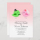 Eine niedliche und wunderliche Hochzeitseinladung mit einem Rosa zum weißen Steigungshintergrund, zwei Liebevögel kennzeichnend, die verheiratet erhalten.