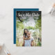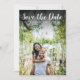 Diese moderne Skript-Foto-Karte verfügt über Ihr spezielles Foto, das mit einem Skript überlagert wird, das über Ihren Namen, Datum und Ort in weißem Text liegt.