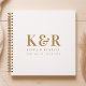 Ein minimalistisches Monogramm-Notizbuch mit klassischer traditioneller Typografie in Gold auf einem sauberen, weißen Hintergrund. Das perfekte Accessoire für Ihren besonderen Tag!