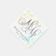 Hochzeit Napkins - Pastellquadrat Strandfarbe (aquamariner blauer und gelber Sand) Konfetti mit "Mr. and Mrs." in extravaganter Schriftzeichen - bereit, mit den verheirateten Namen und dem Hochzeitstermin der neuen Braut und des Bräutigams personalisiert zu sein