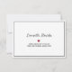 Feiern Sie Ihre Verlobung mit diesen personalisierten Oktober 2023 Hochzeit "Save the Date" doppelseitige Flachkarten. Auf der Vorderseite zeigen diese eleganten Schwarz-Weiß-Karten Ihr Foto, die Namen der Braut und des Bräutigams, Ihr Hochzeitstag und ein Kalender für den Monat Oktober 2023, um Ihre Gäste daran zu erinnern. Sie umfassen auch ein kleines bordeauxfarbenes Wasserfarbenherz und einen "Datumskreis" um das Kalenderdatum. Auf der Rückseite sind Platz für Ihre Hochzeit und mehr Text, wie die Worte "formelle Einladung zu folgen" und Ihre Website. TIPP: Um ein anderes Kalenderdatum zu umkreisen, wählen Sie nach dem Ausfüllen aller anderen Angaben "anpassen / personalisieren Sie weiter". Der DATE CIRCLE ist das oberste Bild. Wählen Sie es aus und verschieben Sie es bis zu Ihrem Hochzeitstag. Sie können auch andere Elemente verkleinern oder neu anordnen und löschen.