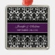Kundengerechte Namen- und Datumshochzeitsverzierung in lila der eleganten und modernen Aubergine dunkles, in klassisches Blumendamastschwarzweiss-muster. Vervollkommnen Sie als Weihnachtsandenken, um sich an Ihren speziellen Tag zu erinnern oder Ihr erstes Weihnachten zu feiern oder als personalisierte Gastgeschenke Hochzeit für Ihre Gäste.